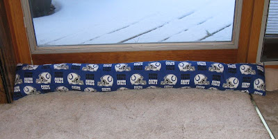 For the second Iron Craft Challenge it was proposed we make darft dodgers. After researching all the artistic and unusual ways to make one, and because my sewing skills are sparse, mine are quite simple. I used fabric remnants and made two of different lengths. First I cut the fabric to fit, the Colts one is about 7x39 inches and the colorful one is a bit bigger, about 8x44 inches.